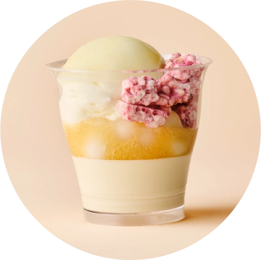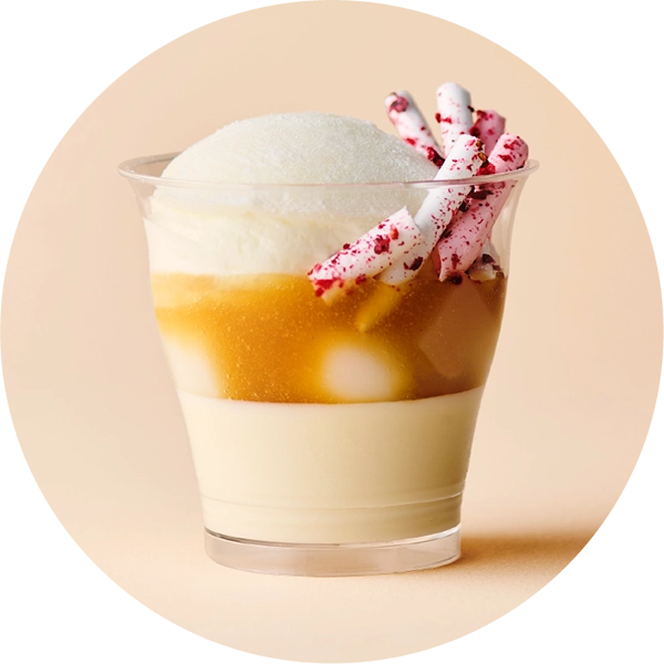スイーツはトッピングカスタマイズ制ですが、全商品のベースに乳、ゼラチン、ココナッツが含まれます。そのほか、一部トッピングに卵、ハチミツが含まれます。