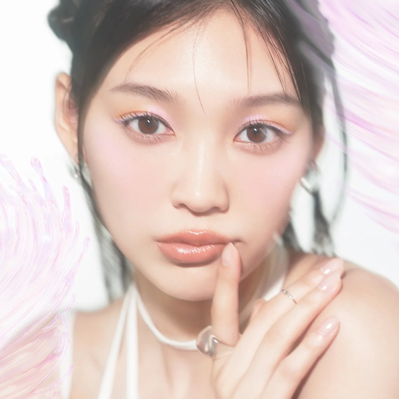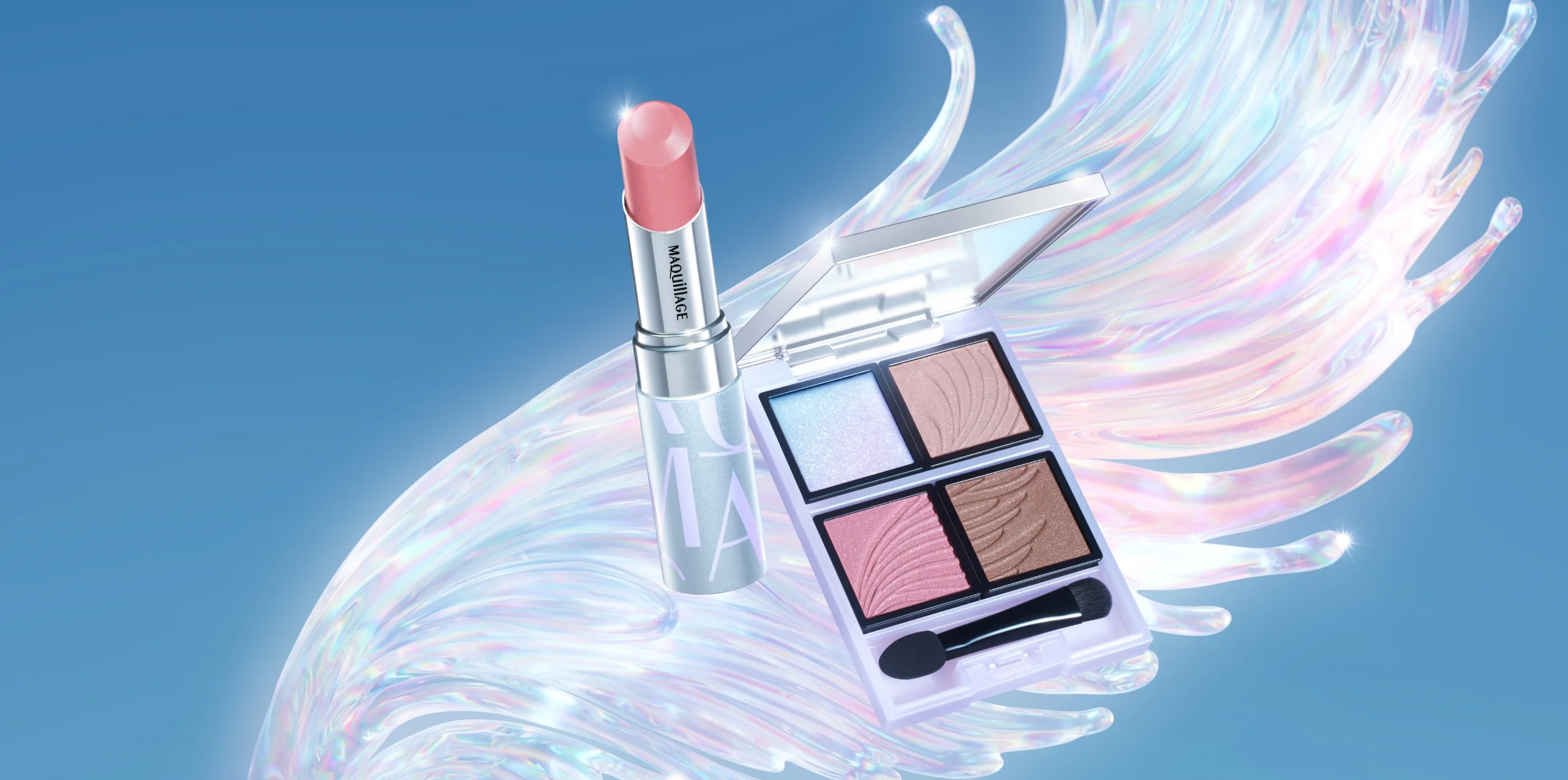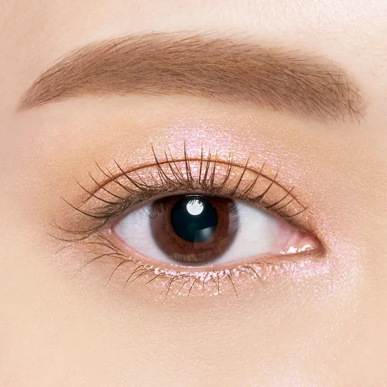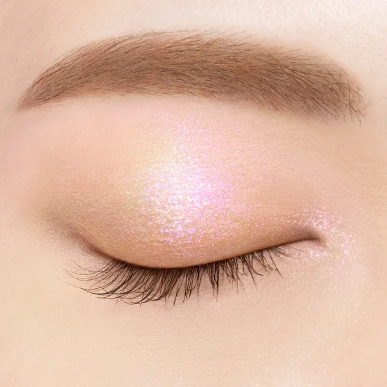肌なじみ偏光パール×目もとや口もとを華やげる高輝度ラメを配合。